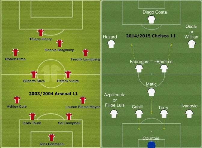 Attack: Arsenal: Henry, Bergkamp, Pires vs Chelsea: Costa, Hazard, Oscar. Result – Arsenal.