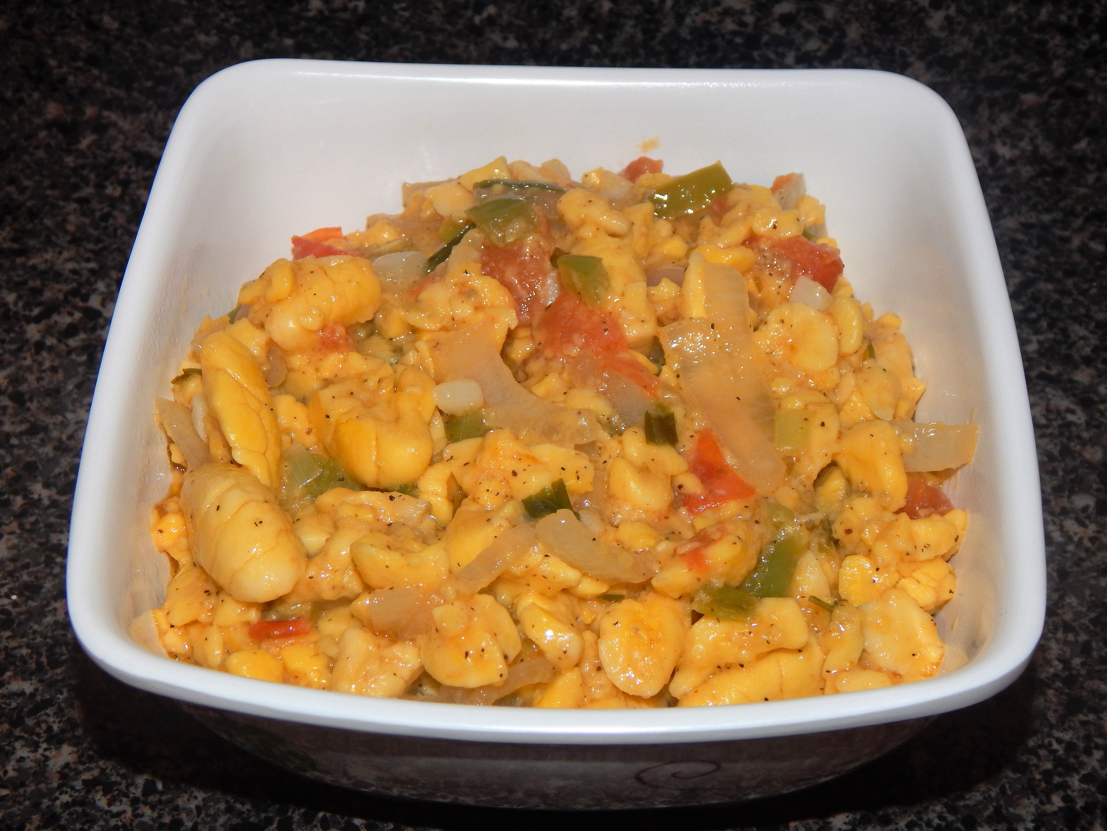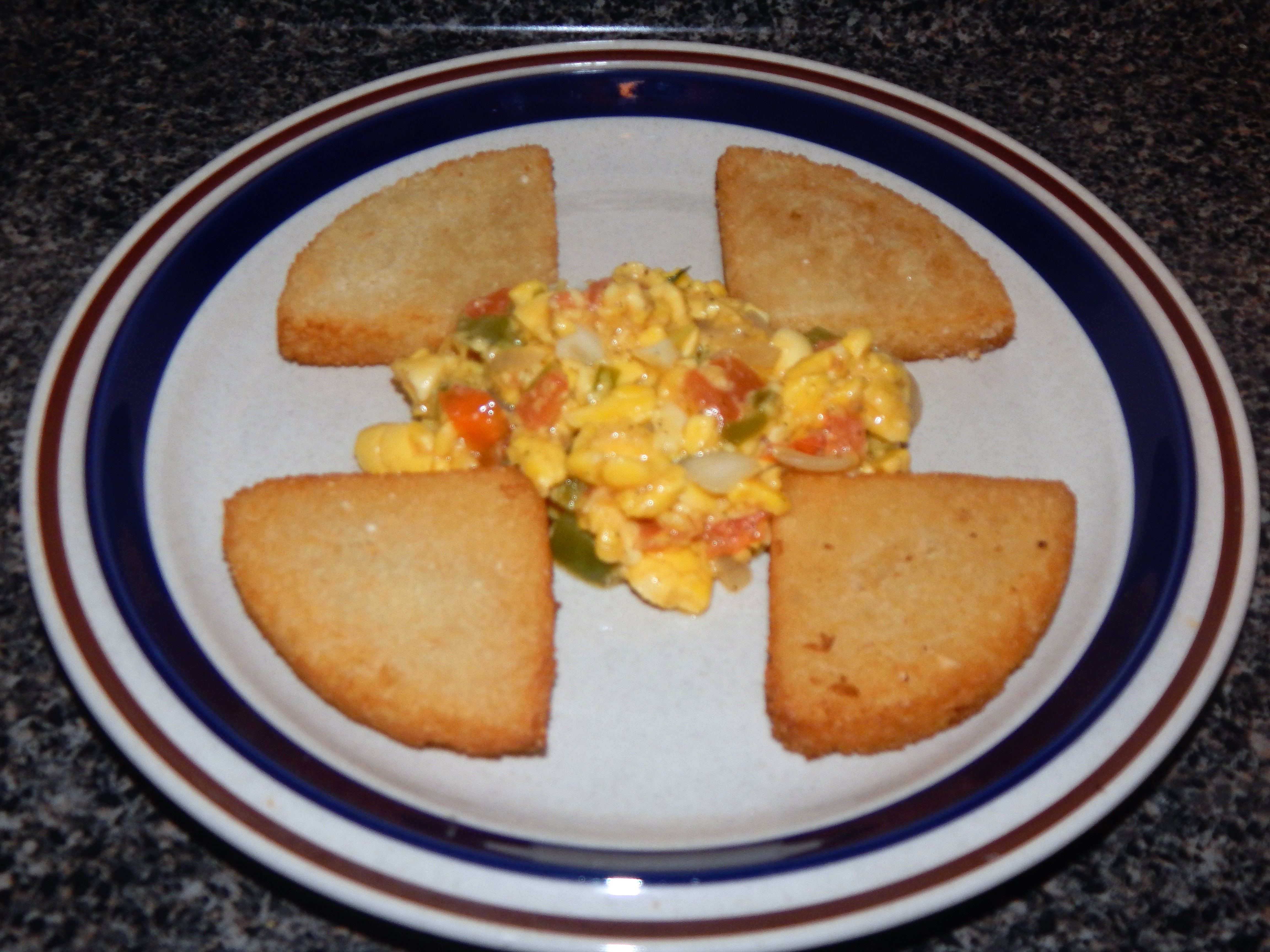 Serve your Ackee and Fried Bammies. This recipe should yield two servings.