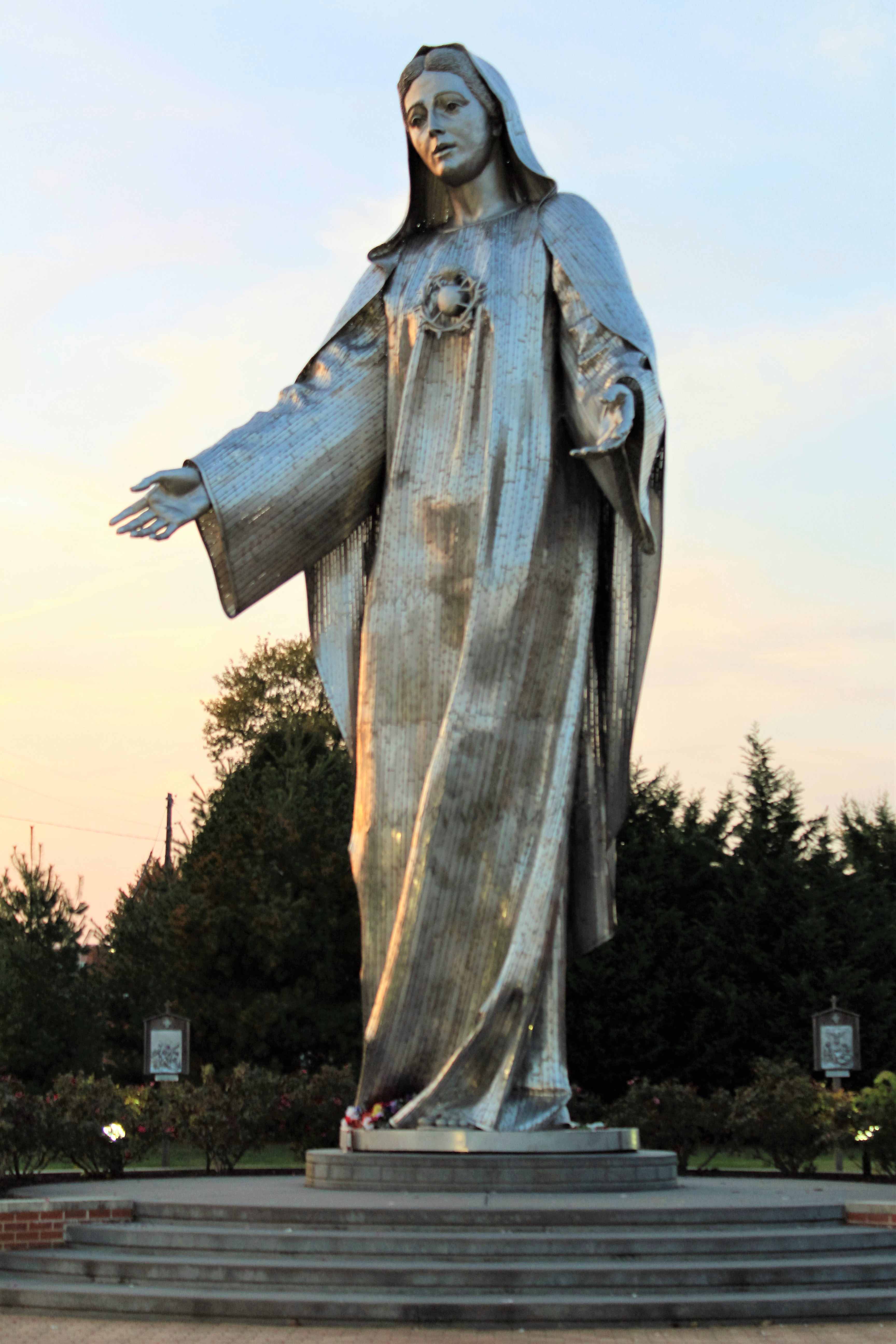 The Our Lady Queen of Peace Statue is a 33-foot tall statue of Mary located at The Holy Spirit Catholic Church in New Castle, Delaware. The giant statue of ‘the mother of God’ was dedicated by Bishop Michael Saltarelli on May 26, 2007.