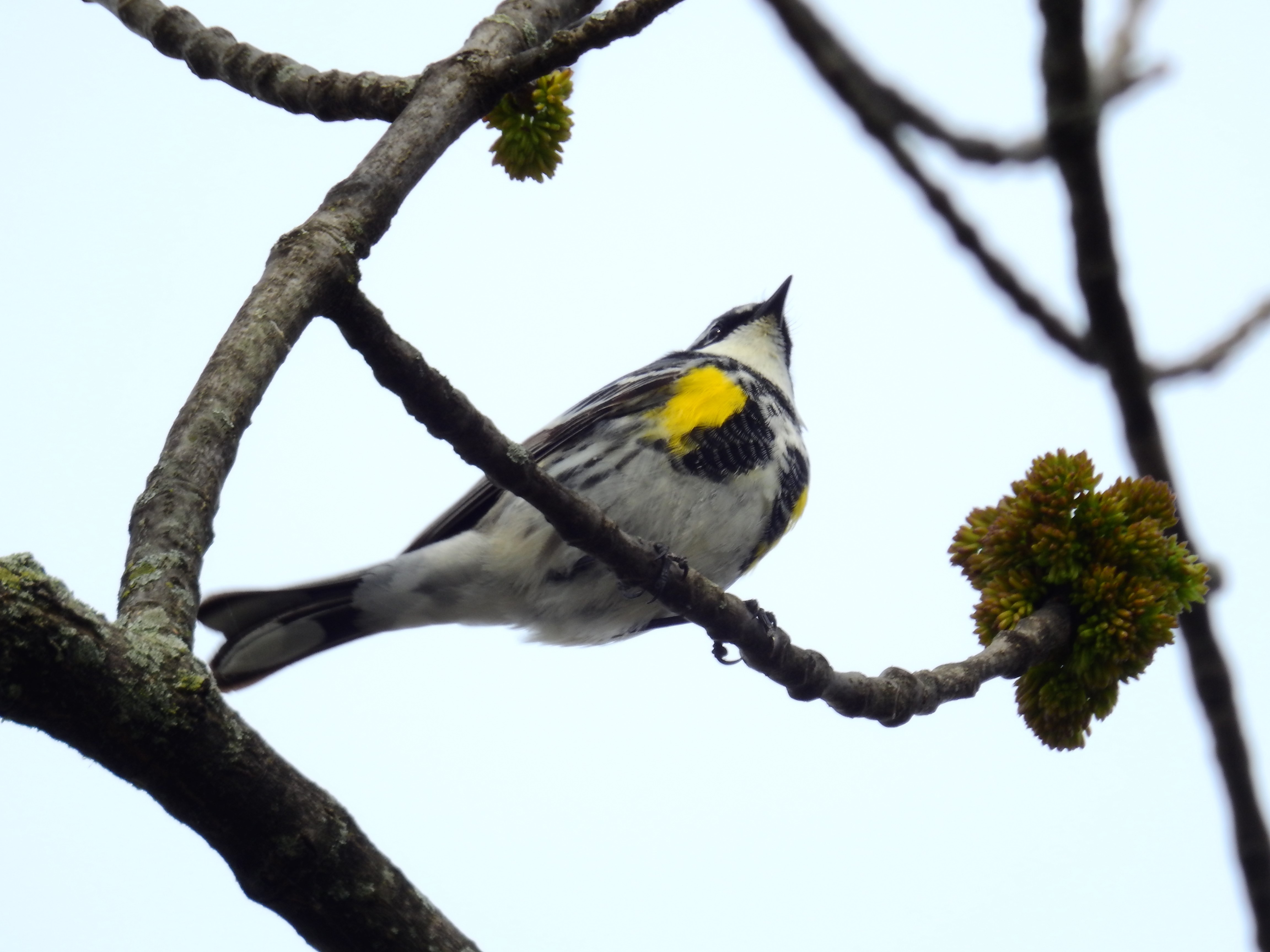 Yellow-rumped Warblers are impressive in the sheer numbers with which they flood the continent each fall. Shrubs and trees fill with the streaky brown-and-yellow birds and their distinctive, sharp chips. Though the color palette is subdued all winter, you owe it to yourself to seek these birds out on their spring migration or on their breeding grounds. Spring molt brings a transformation, leaving them a dazzling mix of bright yellow, charcoal gray and black, and bold white. [All About Birds]