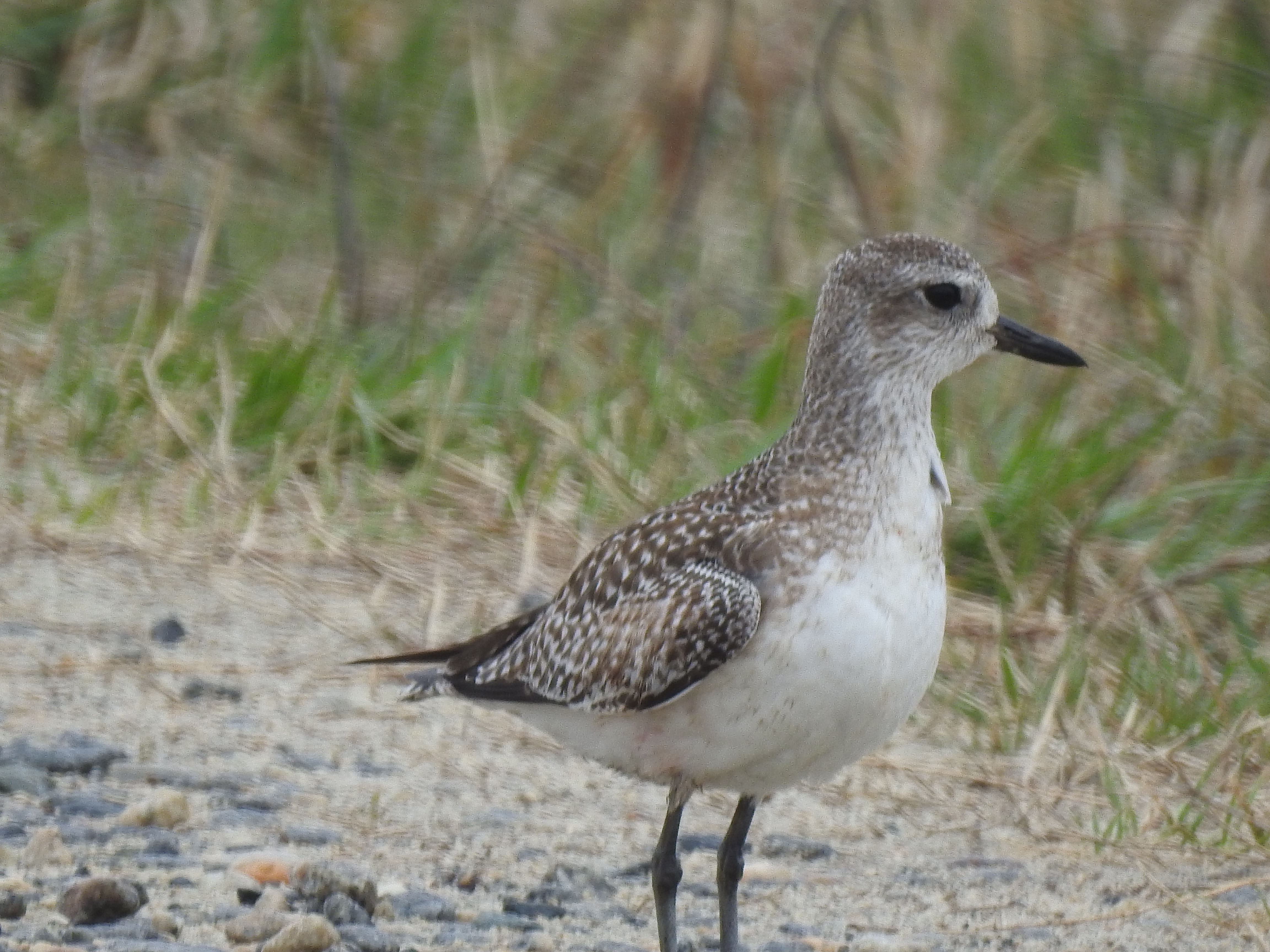 A large shorebird of coastal beaches, the Black-bellied Plover is striking in its black-and-white breeding plumage. It is the largest plover in North America and can be found along the coasts in winter northward to Massachusetts and British Columbia. [All About Birds]