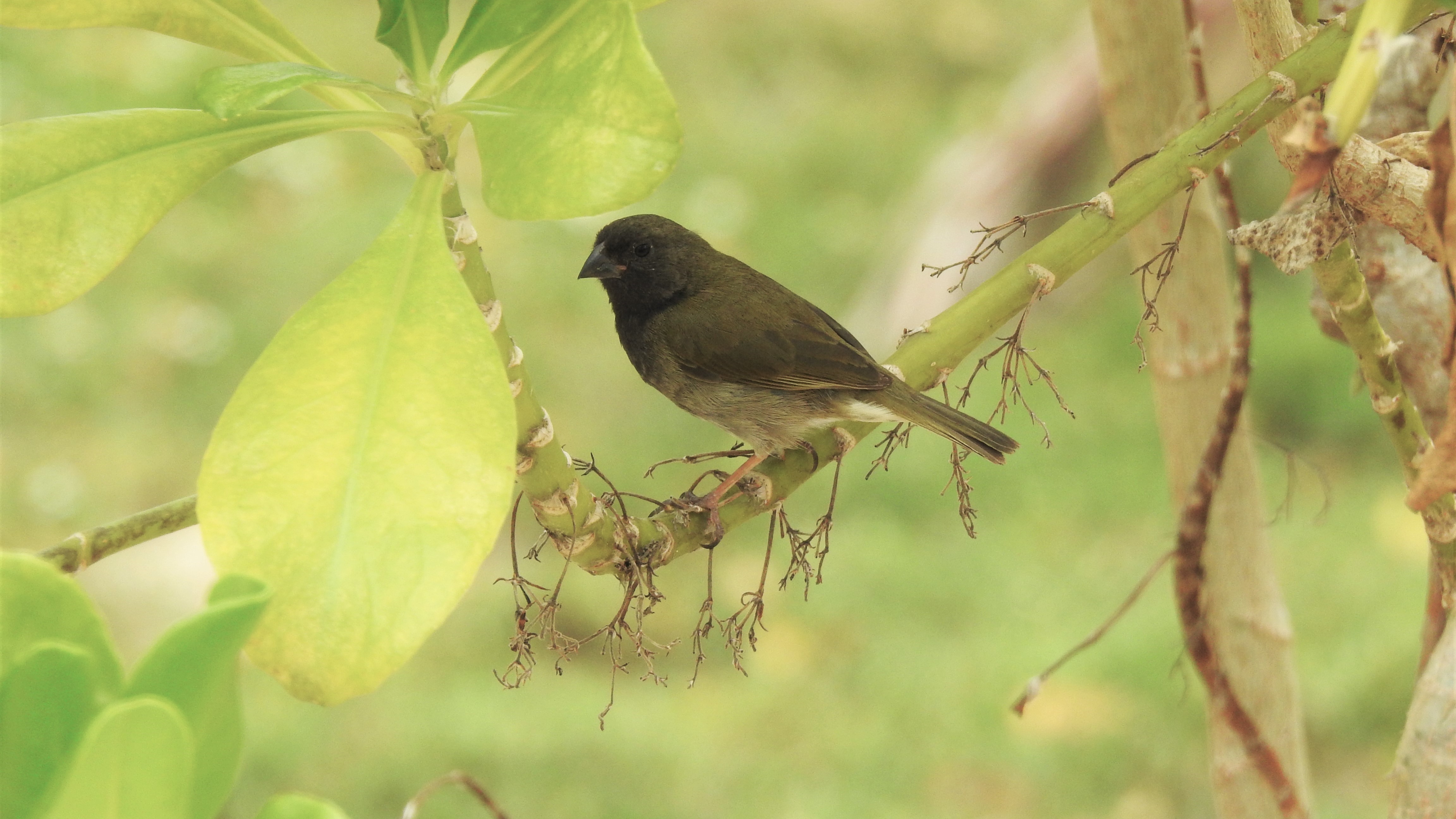 Female and immature Black-faced Grassquits have dull olive-grey upperparts and head, and paler grey underparts becoming whiter on the belly. [Wikipedia]