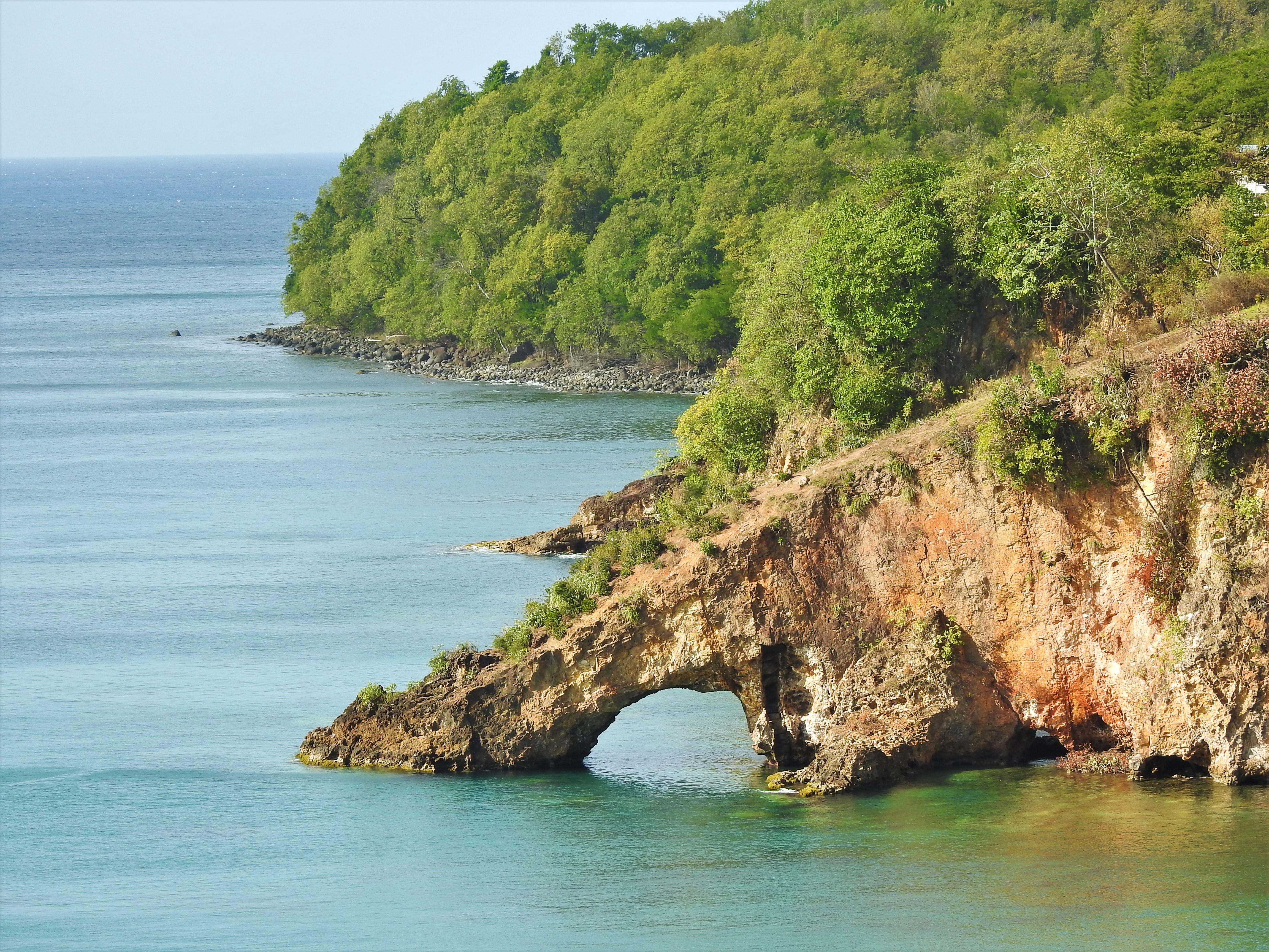 This is a scenic view of Marigot Bay from the Soufriere-Vieux Fort Highway. You can still see the natural arch in the background.