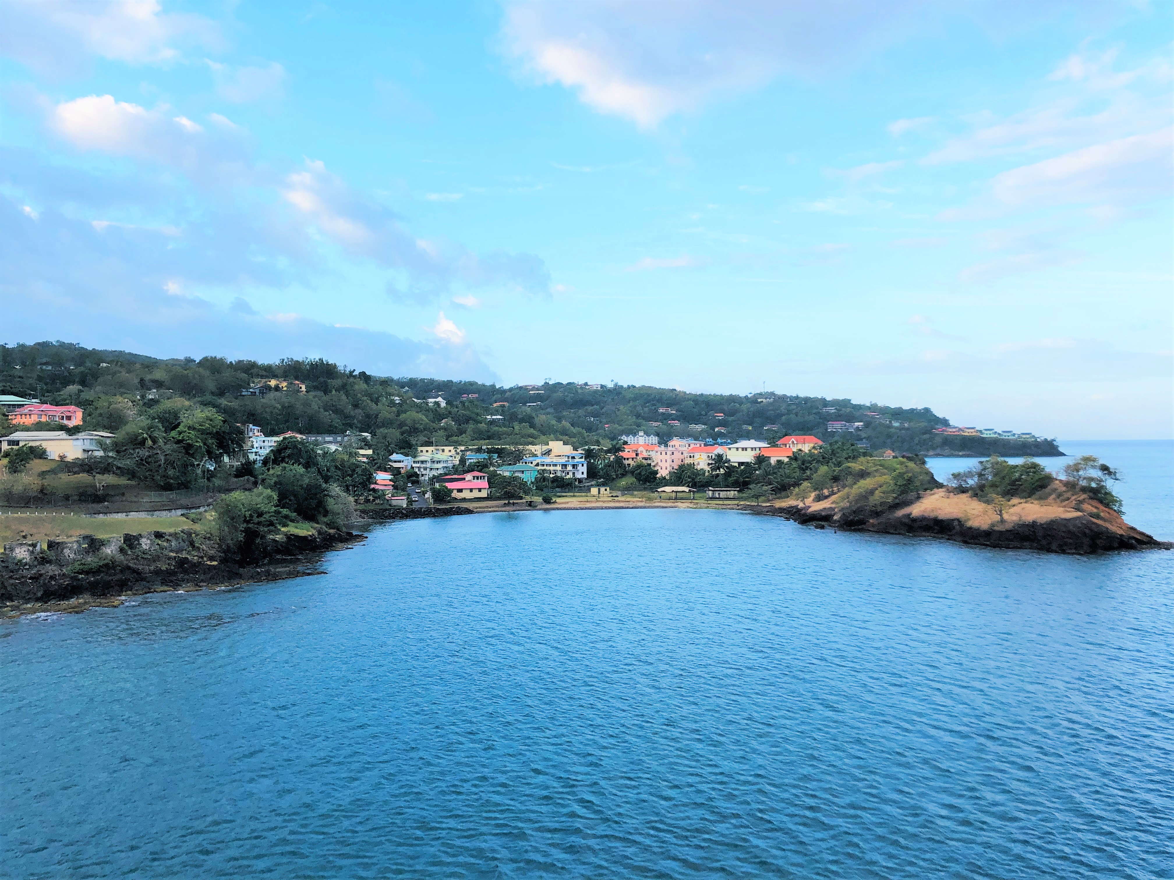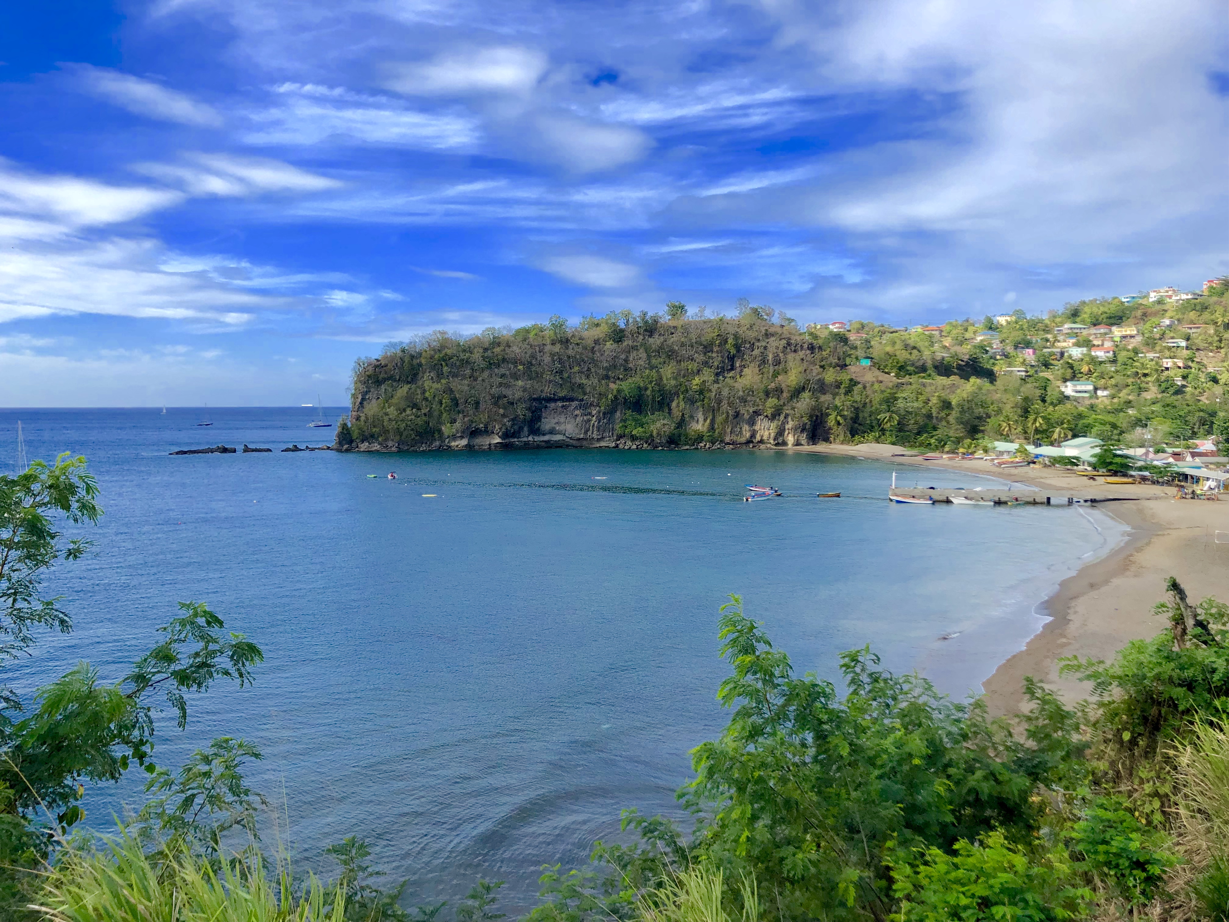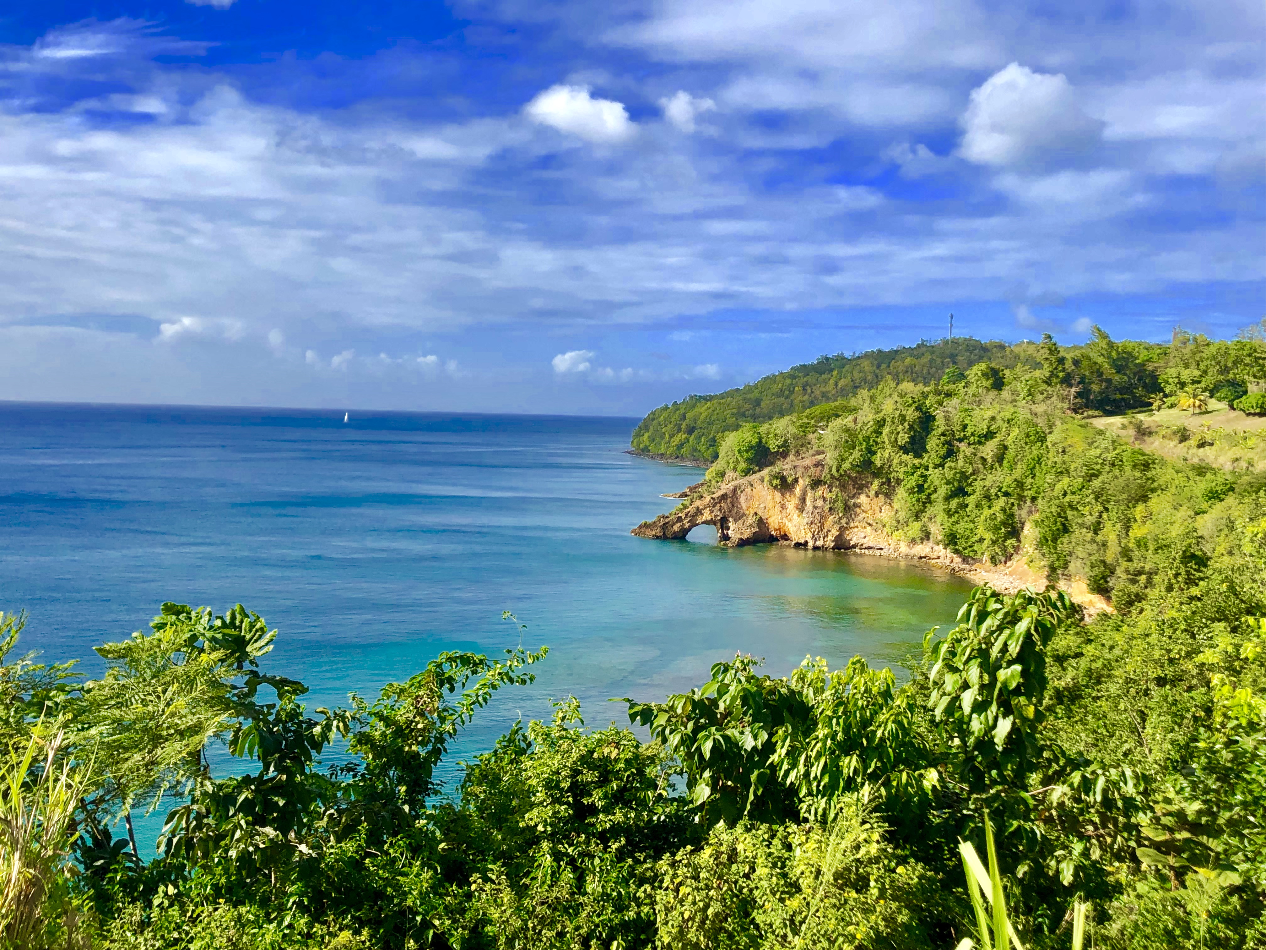 This is a scenic view of Marigot Bay from the Soufriere-Vieux Fort Highway. You can still see the natural arch in the background.