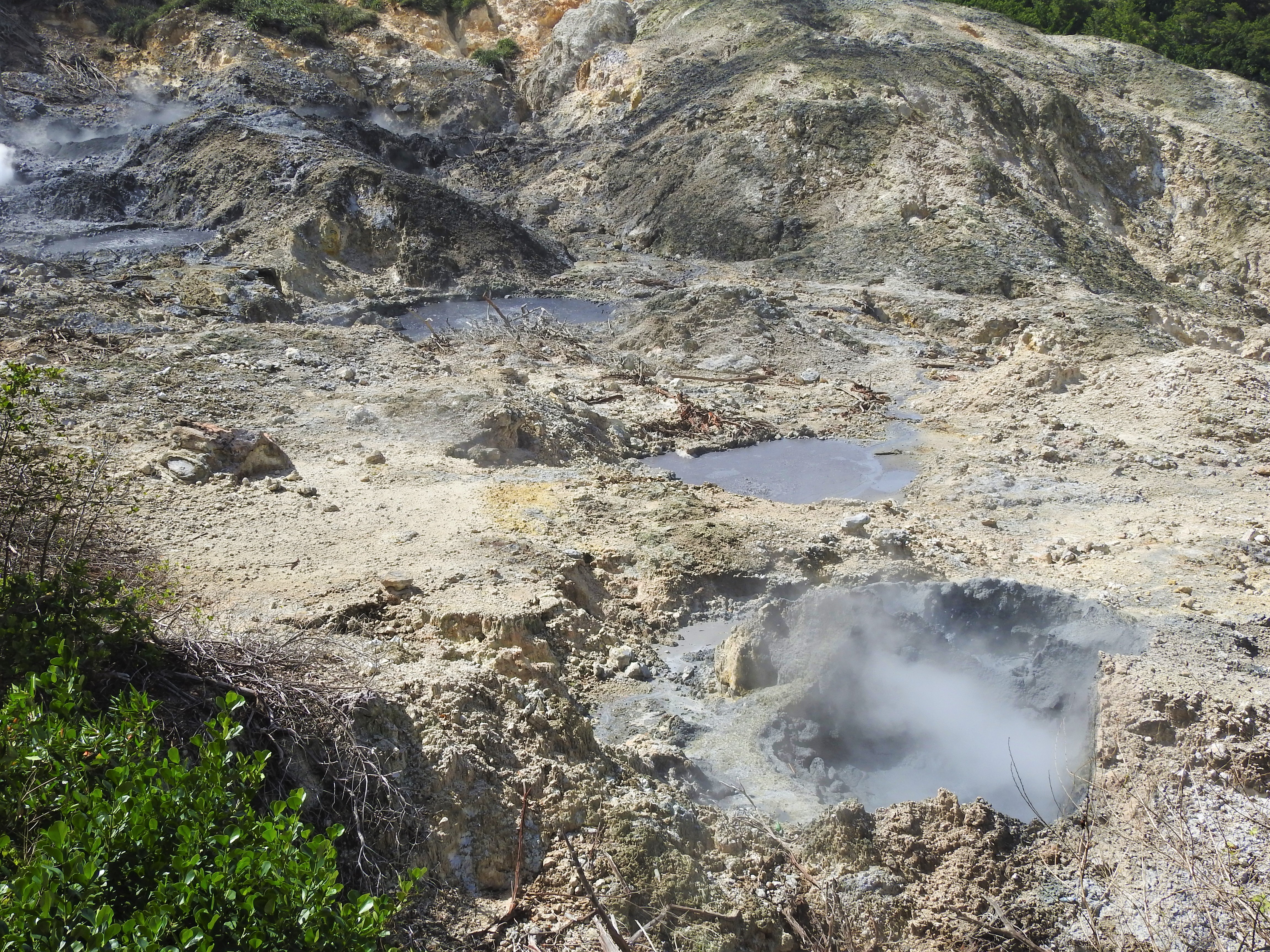 The volcano might be dormant, but there is some activity in the small craters. You can see the steam hovering over the cavities as the liquid bubbles like boiling water in a pot.