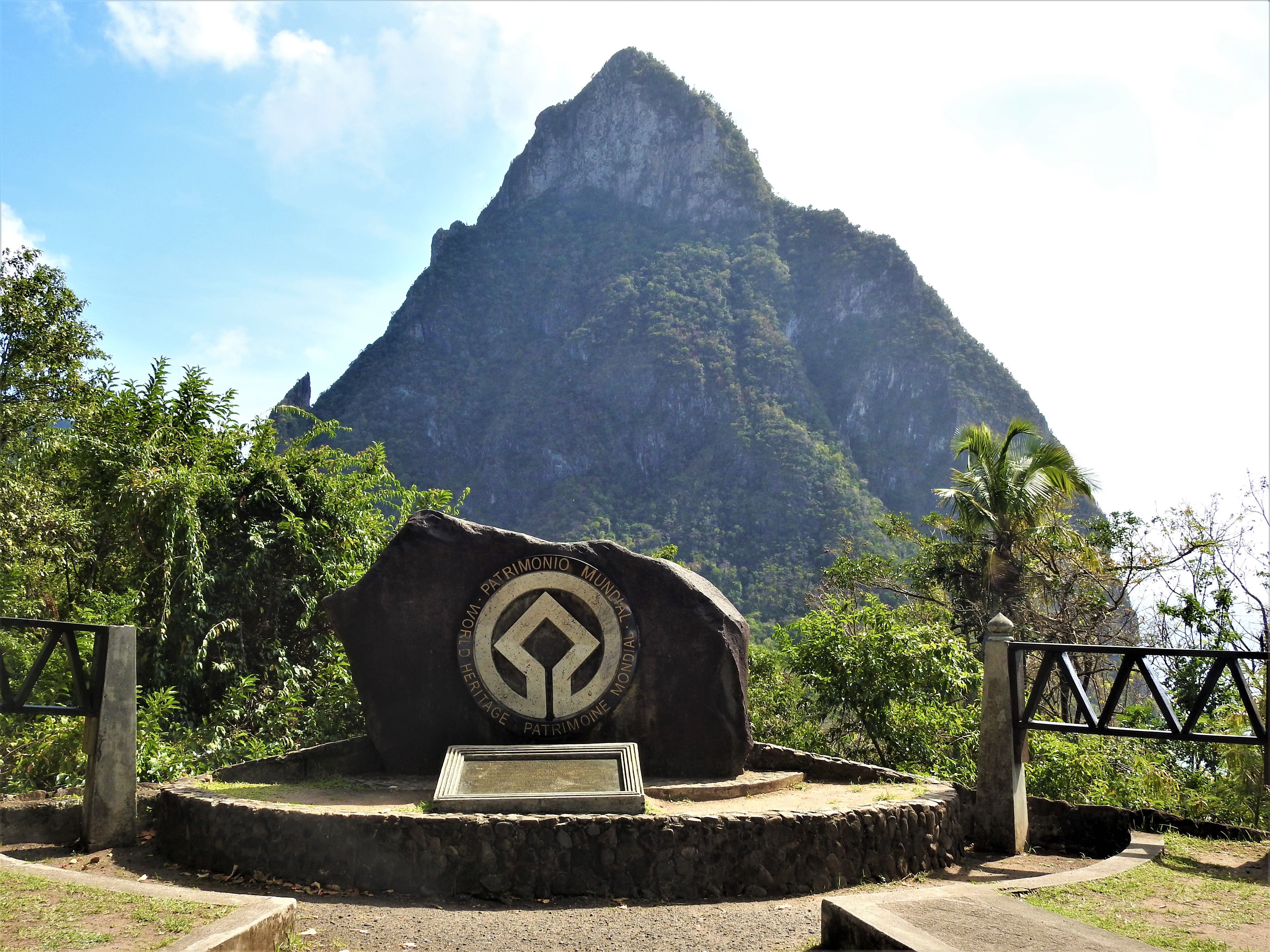 This site, off the Soufriere-Vieux Fort Highway in Saint Lucia is the location of the monument denoting the pitons as a World Heritage Site. You can see one of the pitons in the background.